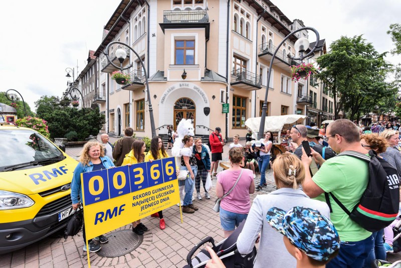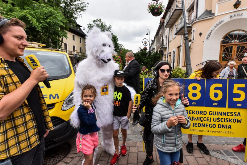 Słuchacze RMF FM, gwiazdy i Biały Miś przejęli Zakopane! Od samego rana zwiedzaliśmy Zakopane. Byliśmy między innymi na Kasprowym Wierchu, Wielkiej Krokwi, Gubałówce i na Krupówkach. Razem z Margaret, Eweliną Lisowską, Antkiem Smykiewiczem, Staszkiem Karpiel-Bułeckim iustanowiliśmy nowy rekord Guinnessa - w przytulaniu się do Białego Misia!