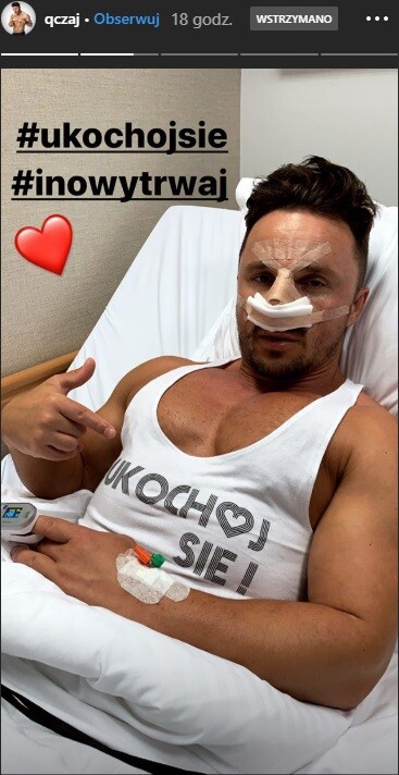 Qczaj, czyli trener personalny znany m. in. z programu śniadaniowego „Dzień dobry TVN”, przeszedł właśnie operację. O tym, że zamierza się poddać korekcie tej części ciała, już od pewnego czasu wiedzieli jego fani. Ci bardzo martwili się o jego stan zdrowia, dlatego Qczaj tuż po operacji postanowił ich uspokoić, nagrywając InstaStories prosto ze szpitalnego łóżka. Jak zapewnia, wszystko poszło dobrze i jest w jak najlepszym porządku. W najbliższym czasie będzie musiał liczyć się jednak z pewnymi niedogodnościami.