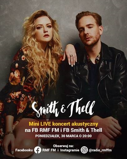 RMF FM przygotowało dla was coś niezwykłego! Już jutro o godzinie 20.00 odpalcie Facebooka RMF FM... Folkowo-popowa grupa Smith&Thell zagra dla was mini akustyczny koncert LIVE! Można siedzieć, można stać, można skakać, można śpiewać - można wszystko, tylko #zostańwdomu z RMF FM i Smith&Thell!