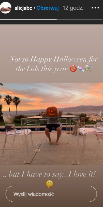 Na instagramowym profilu Alicji pojawił się halloweenowy kadr. Na zdjęciu widzimy jej syna, który pozuje z wydrążoną dynią na tarasie. Z tego miejsca rozpościera się imponujący widok na okolicę.