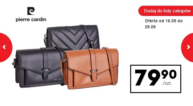 W ofercie Biedronki dostępne są torebki marki Pierre Cardin, w dwóch rozmiarach. Mała, idealnie nadaje się do wyjścia na miasto, kosztuje 79,90 zł. Duża sprawdzi się w pracy czy na zakupach, zapłacicie za nią 99,90 zł. Produkty w sprzedaży już od 16 września!