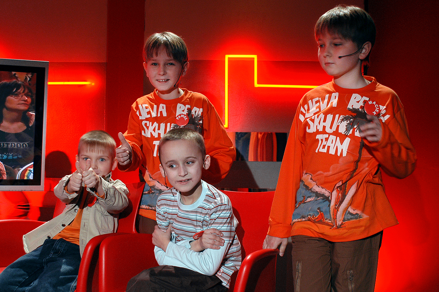 Tomek, Maciek, Paweł i Karol na planie programu „Duże dzieci” w 2006 roku, fot. AKPA