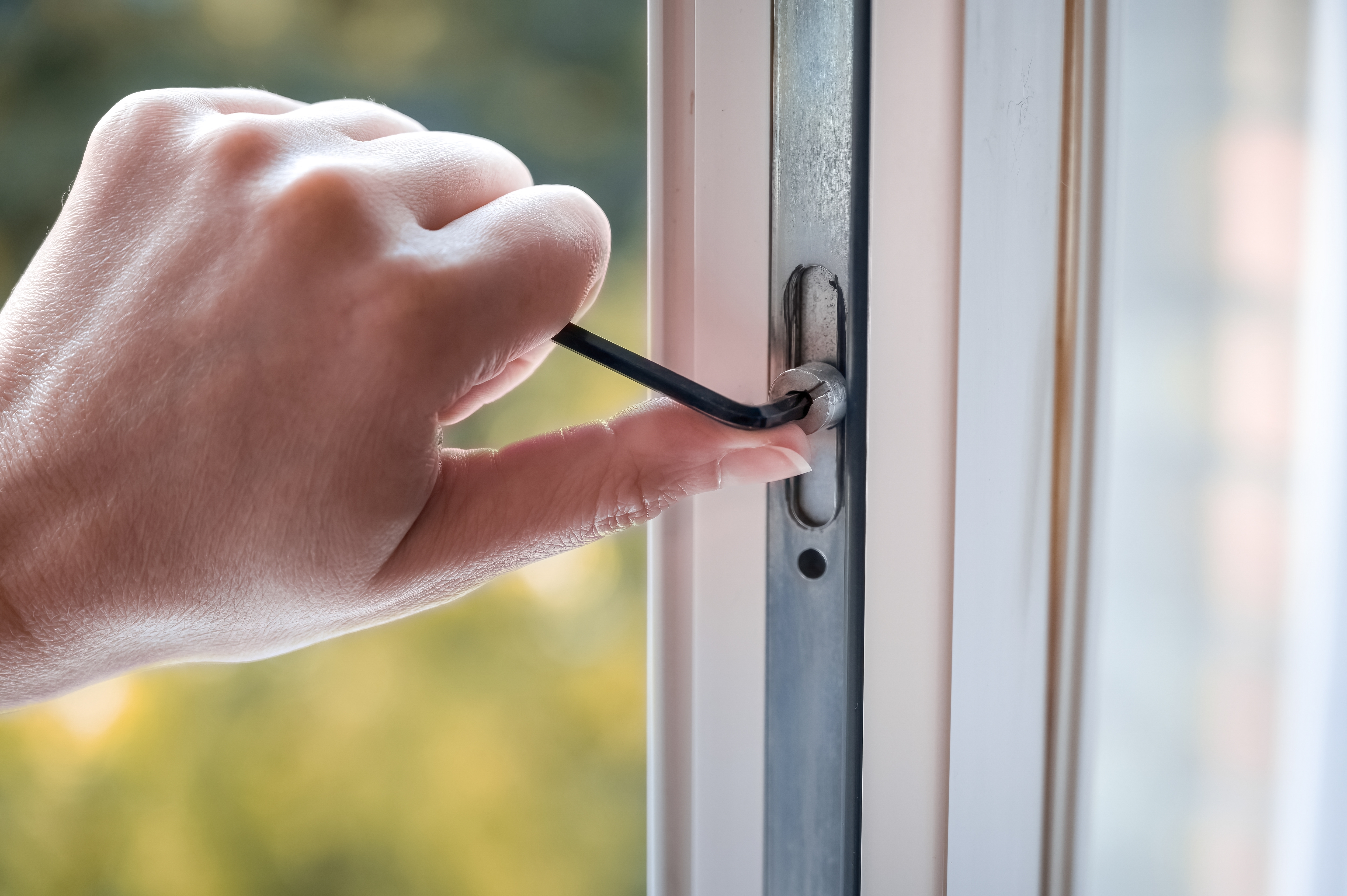 - Otwórz okno i zlokalizuj śrubę (bolec) na skrzydle – zwykle jest ich kilka, na górze, w środku i na dole ramy.
