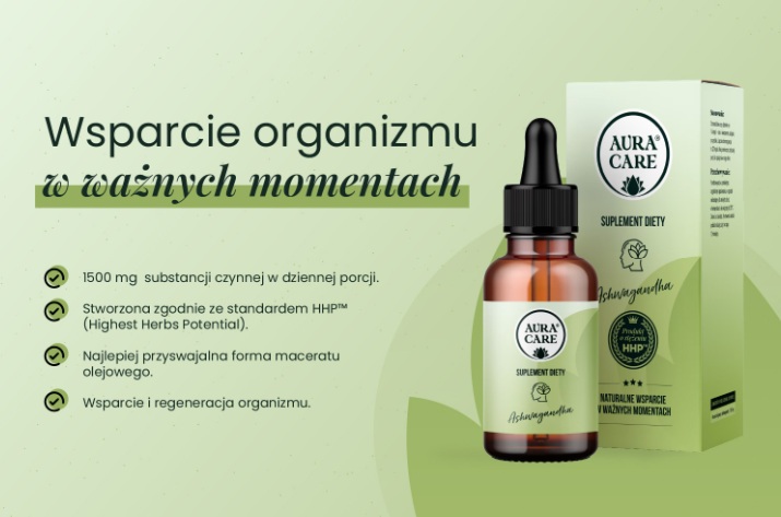 Ciekawą propozycją dla osób, chcących zadbać o siebie od środka, okazuje się być suplement diety „Ashwagandha” od Aura Care – ekstrakt 1:1, który wspiera ogólne samopoczucie psychiczne, niweluje stany zapalne w organizmie oraz redukuje napięcie nerwowe. To naturalny produkt, którego już 32 krople dziennie zapewniają bardzo wysoką dawkę ashwagandy – aż 1500 mg. Suplement wyróżniają najwyższe standardy maceracji, stworzone przez Instytut Rozwoju Badań i Suplementów - HHP™ - Highest Herbs Potential - które pozwalają na uzyskanie z rośliny najwyższego potencjału (poprzez stosowanie procesów, dostosowanych do charakteru surowca i jego naturalnego profilu związków roślinnych). To standard, porządkujący pracę z surowcami roślinnymi w suplementacji – oparty na obserwacji, doświadczeniu i zrozumieniu biologii roślin (a nie na jednym, schematycznym podejściu). Co ciekawe, działania Instytutu Rozwoju Badań i Suplementów od lat odpowiadają na potrzebę lepszego rozumienia jakości suplementów, porządkowania procesów badawczych i produkcyjnych oraz zwiększania bezpieczeństwa i komfortu użytkowników. To miejsce, które wspiera także innowacyjne, a przy tym przemyślane rozwiązania - instytucja, patrząca na produkt całościowo, stawiająca na odpowiedzialność, uporządkowanie i wiedzę w branży suplementów diety.